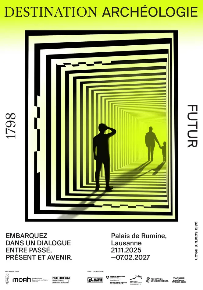 Destination archéologie. 1798—Futur propose de découvrir comment la science construit notre regard sur le passé. A bord d’une machine à voyager dans le temps, le public plonge dans le 19e siècle et traverse la grande histoire de l’archéologie. Il aborde les civilisations anciennes avec les yeux de cette époque et explore les idées qui en découlent.